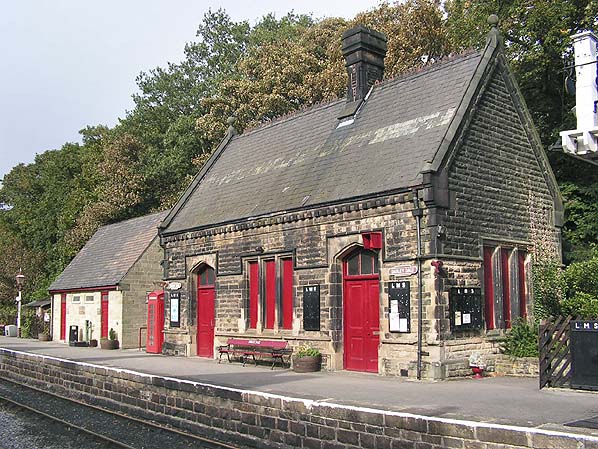 The original waiting room on the southbound platform at Darley Dale's second station as seen in October 2009 by which date it had been restored by Peak Rail and was in use as a Midland Railway Museum. The building to the left is a modern toilet block that would not have been present when the station closed in the 1960s. Photo