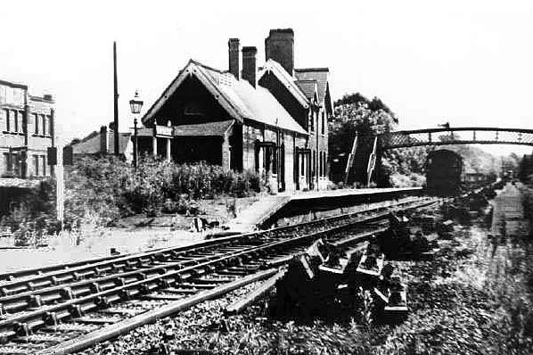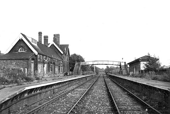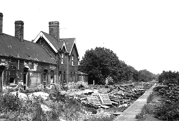 ![]() ![]() The main station building on the up platform c1968. The building was similar to others on the Derbyshire extension. The goods shed is seen on the far left.