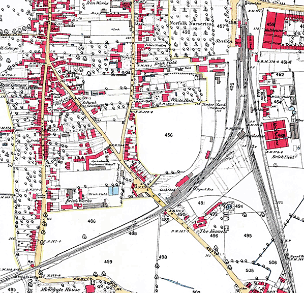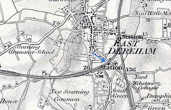 Further evidence of the station is found in Journal 20 of the Great Eastern Railway Society which states: A second route to Dereham was brought into use on 11th September 1848 with the opening of the Sporle - Dereham section of the Lynn and Dereham Railway. Connection with the Norfolk Railway was brought into use the following year, the junction south of Dereham facing northwards, precluding through running between Norwich and King’s Lynn without reversal.