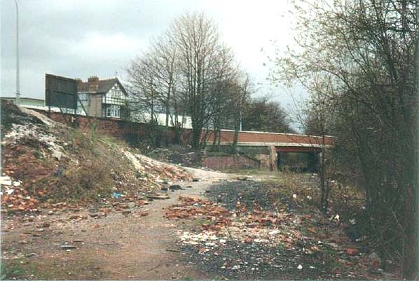![]() The site of Didsbury Station looking towards the northwest in the early 1990s. The station site had been partly filled in.