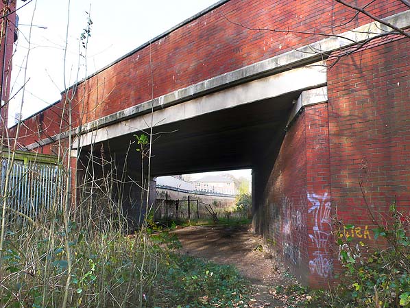 ![]() Looking south east towards the site of Dissbury station in November 2008. The station was on the far side of Wilmslow Road bridge.