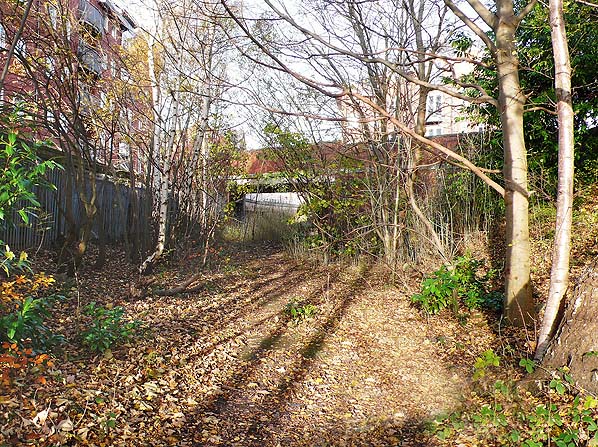 ![]() Looking south east towards the site of Dissbury station in November 2008. The station was on the far side of Wilmslow Road bridge.