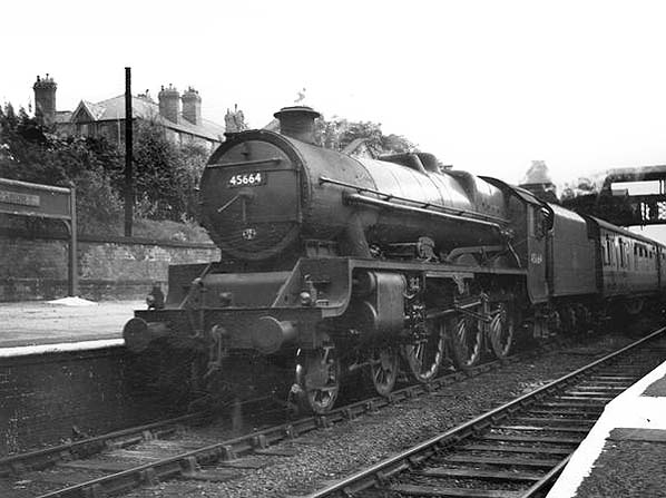 ![]() A train heads north running 'wrong line' at Didsbury Station in 1954. For a train to be travelling northbound on the southbound line was very unusual. The most likely reason would have been engineering works.