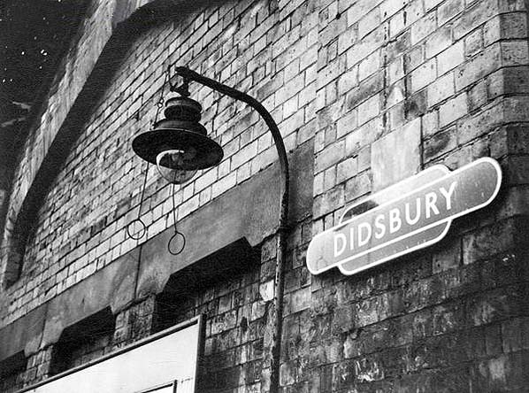 A British Railways 'Totem' style sign and a gas lamp at Didsbury Station in 1964.