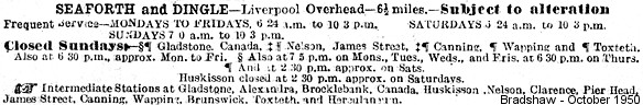 The Dingle and Southport service was withdrawn in August 1914 as it was not generating the receipts that the LYR had hoped for. Through tickets between Dingle and Southport were still sold, but passengers were required to change trains at Seaforth & Litherland.