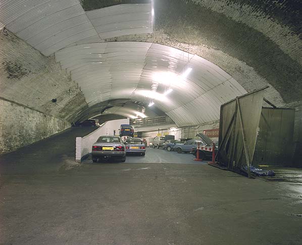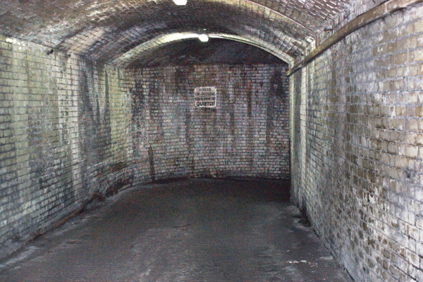 The subway connected into a large 163yd tunnel which connected to the double-track Dingle Tunnel (through which the line ran to Herculaneum) at its western end, and to a short dead-end tunnel, 123ft in length, at its eastern end. The end-wall of the dead-end tunnel was of bare sandstone. It was left un-faced because the LOR had plans to build an extension further out into the Liverpool suburbs - which never materialized.