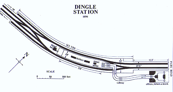 Dingle had not only the railway line serving the underground station, but also a service operated along Park Road in Dingle by the Liverpool Corporation Tramways Department. Because of this Dingle station also became an interchange facility with many passengers changing between trams and trains. It took only twelve minutes from Dingle to Pier Head station in |