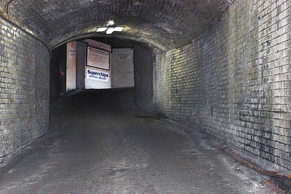 The pedestrian subway at Dingle station looking up towards the site of the booking office in March 2012.