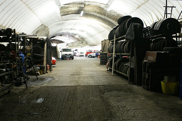 ![]() Looking east from a point that would have been at the western end of the Dingle station underground island platform as seen in March 2012. The site was being used by Roscoe Enginneering as a car repair centre.