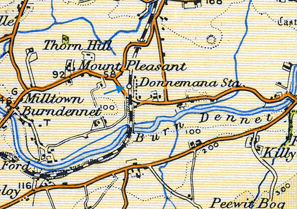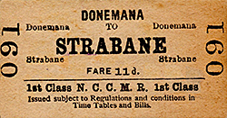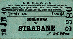 Notes: Donemana was one of the intermediate stations on the Donegal Railway’s (DR) Strabane – Londonderry Victoria Road line which opened to goods on 1 August 1900 and to passengers on 6 August 1900. The 14½ mile line was of the 3ft gauge and it had been built to provide the DR with direct access to the city of Derry/Londonderry (from 1894 until the line opened the DR had to tranship goods onto the 5ft 3inch gauge Great Northern Railway Ireland [GNRI] route to Londonderry Foyle Road).