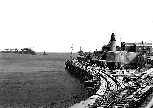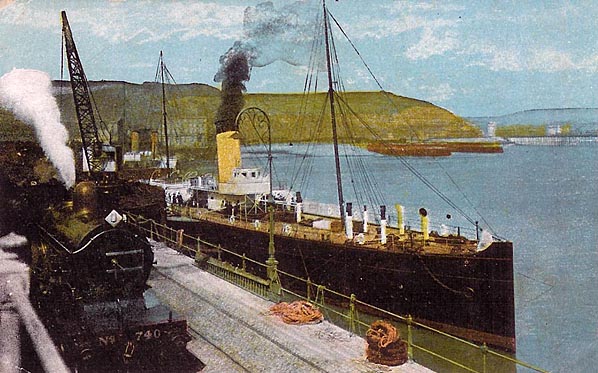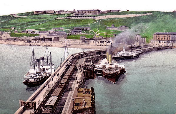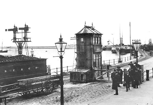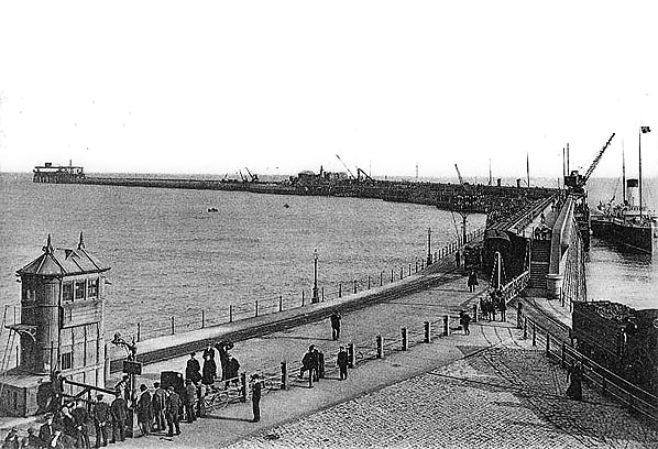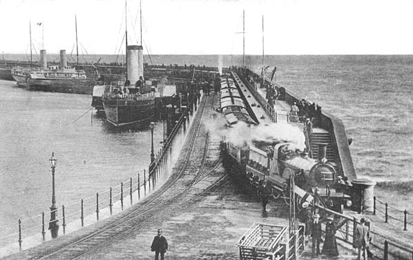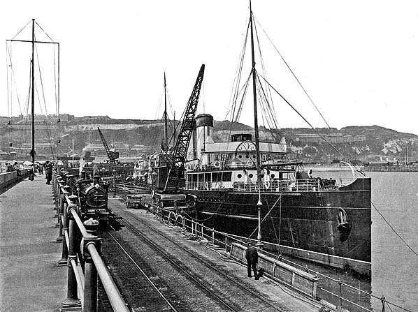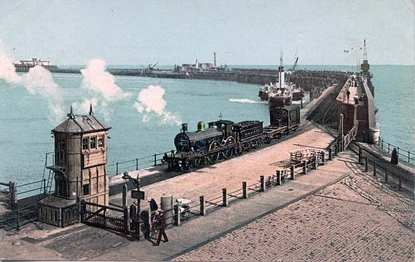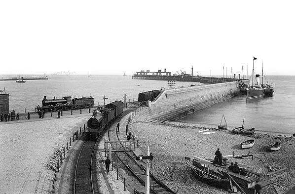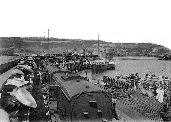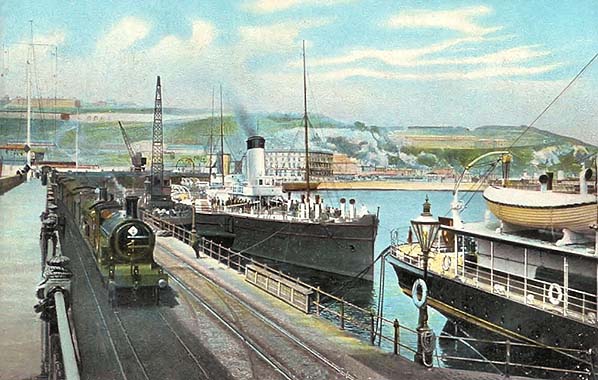 Photo from John Mann collection ![]() A passenger train is pulling away from the Admiralty Pier and taking the South Eastern route to London in the first decade of the twentieth century.