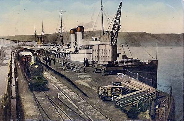 ![]() The 'Empress' is seen moored beside the new passenger platform that was opened in 1906. The 'Empress' was built for the LC&DR by Fairfield Shipbuilding & Engineering Ltd, Govan, in 1887. After 19 years’ service the vessel was withdrawn in 1906 and broken up. The original black and white photograph (below) has been hand-tinted to produce a colour postcard. Little artistic licence is in evidence here; the postcard closely matches the original.