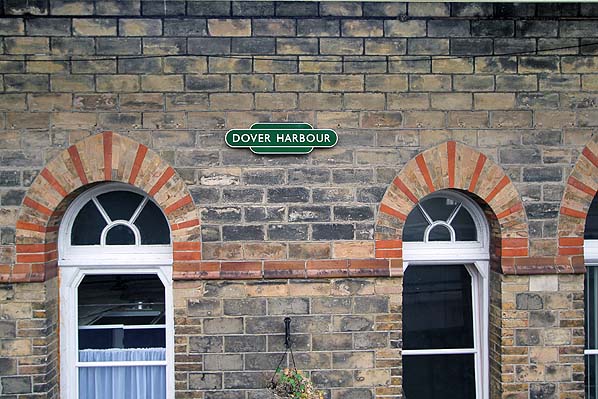 A number of replica BR Southern Region green totem signs have been fitted on the station by the new owner. Had the station remained open for another 30 years it might have received signs like this. This shows the large yellow bricks used in the construction of the building. (September 2014).