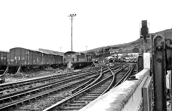 Looking west at the site of Dover Town station in September 1973. The Dover Town Yard now occupies much of the station area. On the right cartics are seen alongside the rebuilt Town platform.