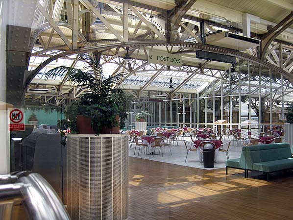 Dover Cruise terminal 1 in June 2012. Dining area created at footbridge level beneath the trainshed.