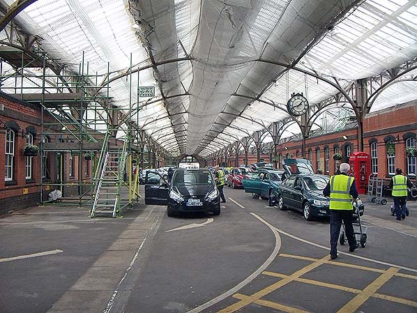 ![]() Station Name: DOVER MARINE/DOVER WESTERN DOCKS![]() Looking north and platforms 4 and 5 in June 2012. The two platform edges can been seen, the track bed has been raised to platform level so that it can be used as a road with parking bays marked out on the platforms. Cruise passengers are seen arriving at the terminal. Photo by David Todd ![]()