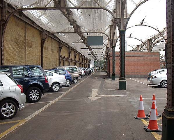 ![]() Station Name: DOVER MARINE/DOVER WESTERN DOCKS![]() Looking south along platform 3 at Dover Western Docks in June 2012. The platform is now the exit for cars leaving the cruise terminal; the track bed on the left has been raised to platform level to create parking bays. Photo by David Todd ![]()