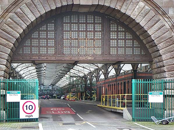 ![]() Station Name: DOVER MARINE/DOVER WESTERN DOCKS![]() The rail entrance to platforms 4 and 5 of Dover Western Docks station at north end of the trainshed in June 2014. This is now the vehicle entrance to terminal. The infilled trackbed up to platform level is clearly seen. Photo by David Todd ![]()