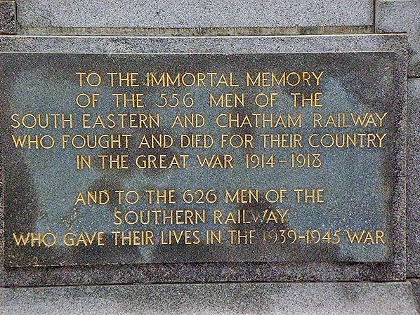 War memorial at Dover Western Docks station in June 2012. This is the inscription at the base of the central sculpture.