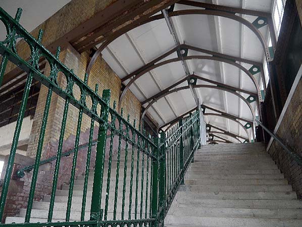 ![]() Station Name: DOVER MARINE/DOVER WESTERN DOCKS![]() The steps up to the elevated walkway in April 2015. The walkway was divided, the left side leading to the station and the right side to the pier promenade. Now only the steps are divided. Photo by David Todd ![]()