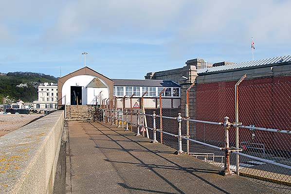 The passenger bridge into Dover Western Docks station seen from the Admiralty Pier promenade in May 2015.