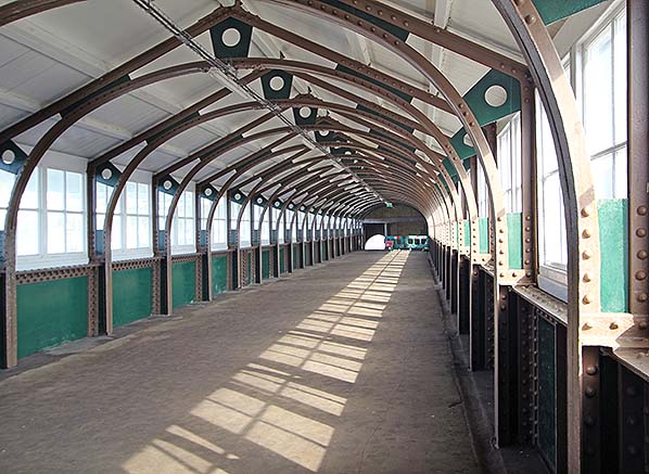 Looking north along the elevated walkway towards the steps down to the street in May 2015