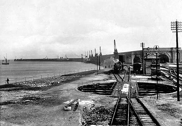 ![]() Station Name: DOVER MARINE/DOVER WESTERN DOCKS![]() The only locomotive facilities at Dover Marine were a turntable and water tank behind the signal box; they are seen in this view from the 1920s. Locomotives were allocated to the former LC &DR shed at Dover Priory. This was replaced by a new 5-road shed on the site of Dover Town station in 1928. The turntable and tank seen here were removed at this time. Photo from John Mann collection ![]()