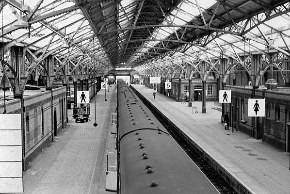 Dover Marine station looking north at platforms 4 and 5 from the footbridge in September 1973.