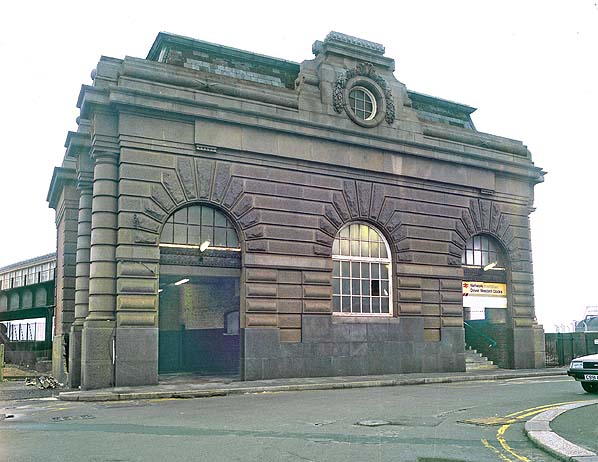 ![]() Station Name: DOVER MARINE/DOVER WESTERN DOCKS![]() The passenger entrance to Dover Western Docks station in January 1995, four months after closure. The entrance door to the station on the left is still open although the sign above the door has been removed. The sign above the door on the right is still in place as the entrance is still in use for access to the Admiralty Pier promenade. The sign above the door still says 'Network SouthEast - Dover Western Docks'. Photo