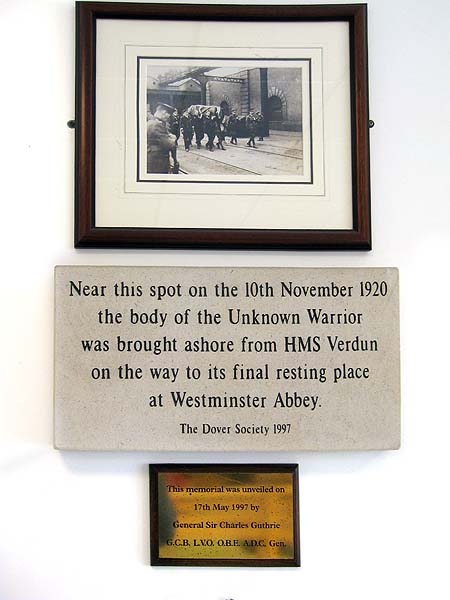 Plaque to commemorate the return of the Unknown Warrior at Dover