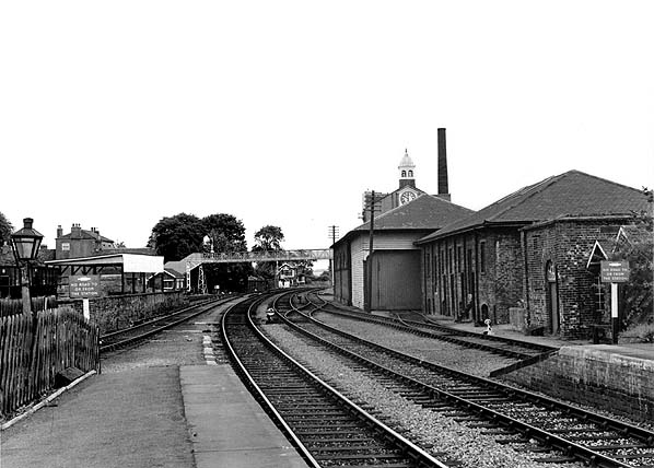 Driffield station looking north from the down platform in September 1973. The goods yard is on the right with the coal depot on the left.