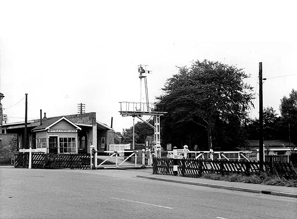 Level crossing at south end of Driffield station in September 1973.