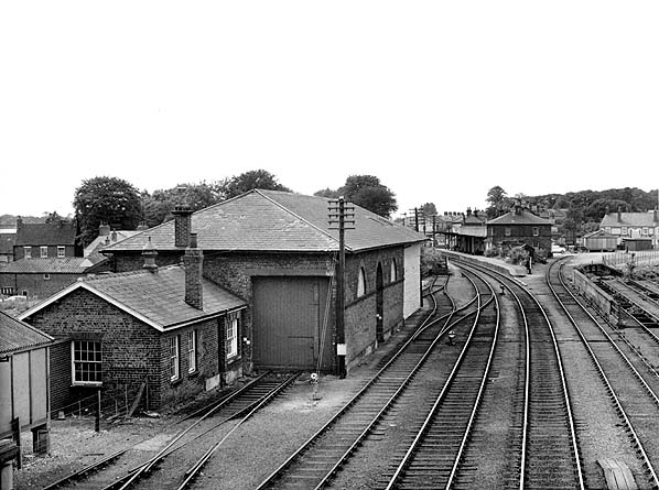 Driffield station goods shed (left) and coal drops (right) in September 1973.