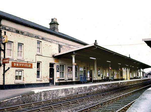 Driffield station down platform in April 1976.