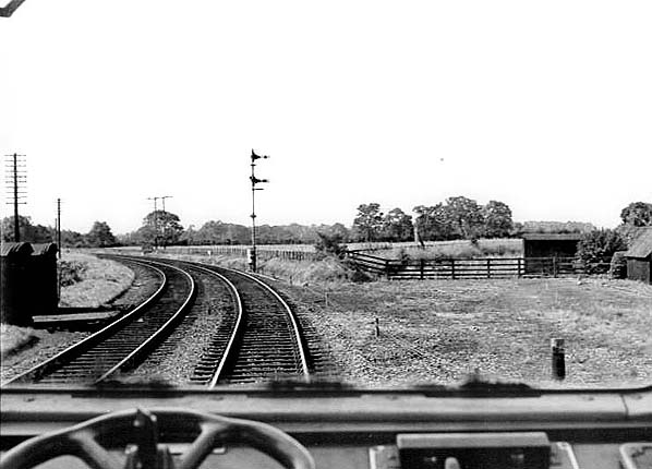 The site of the lifted line to Market Weighton to the south of Driffield station, seen from the rear of a DMU in July 1968.