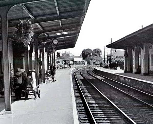 Looking north along Driffield station down platform in July 1968.