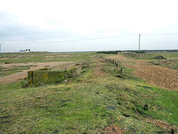 Dungeness Station looking north along the platform in January 2006. Part of the base of the station building can still be seen. Photo by Nick Catford