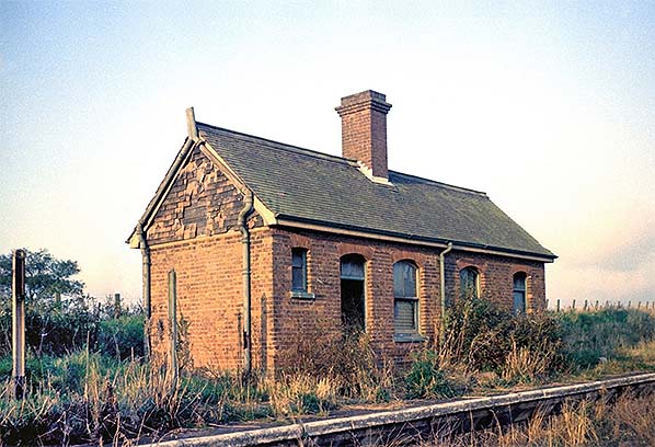 ![]() The waiting room on the down platform at Dunham station in January 1975. When Dunham opened there was only a short, narrow down platform with no buildings. The down platform was extended at its west end and the waiting room built after 1885. Note the two posts that once supported the running-in board.