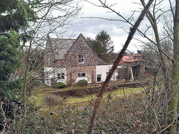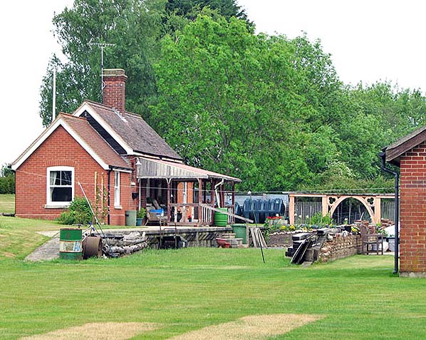![]() The former down platform waiting room has been extended and converted into a private residence, seen here in May 2010. The canopy seen here is not original, the waiting room never had a canopy. This is one of three separate properties using old railway buildings at Dunham. a fourth house on the site