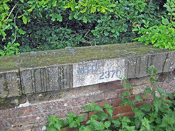 ![]() Station Name: DUNHAM![]() At Dunham station the bridge that spanned the east end of the site remains in place in September 2017. It is marked with a post-closure maintenance number, a combination of the GER number and a code referring to Middleton Towers to Dereham. Photo by Glen Kilday