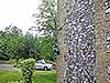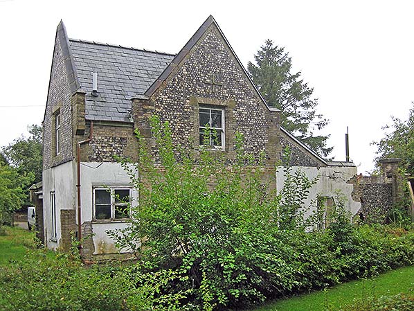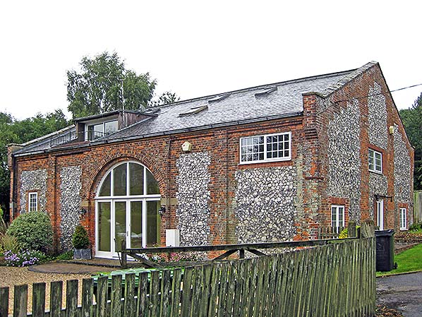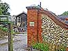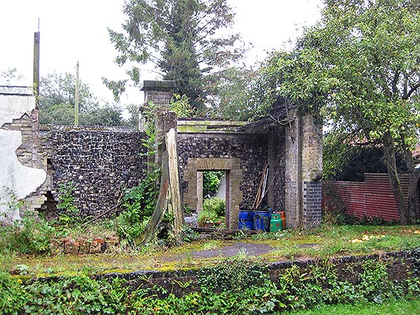 Photo by Glen Kilday ![]() At Dunham the large goods shed is now a dwelling. This is the view from the station approach in September 2017. The attractive building style of brick corners and finely knapped flint infills was used at sites all along the Lynn & Dereham. Flint is a durable material but not suitable for making corners.