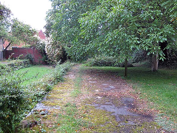 Photo by Glen Kilday ![]() Dunham’s down platform opposite the station house. A lamp post remains in place under the tree in September 2017. The brick building beyond the fence is a new build house.