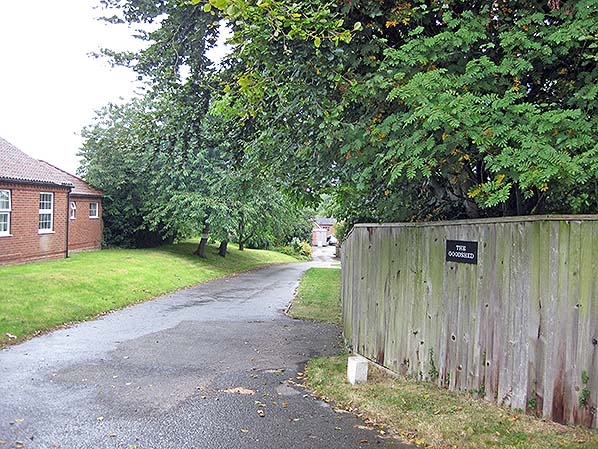 ![]() Station Name: DUNHAM![]() The view down the former station approach towards where lay the up side goods sidings, on the site of the house in the distance, at Dunham station. The building on the left is a modern extension to the Crown Inn, now a residential care home. September 2017. Photo by Glen Kilday