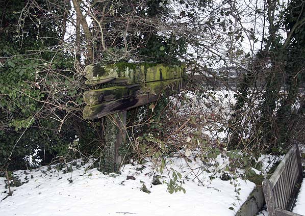 What appears to be a buffer stop behind the turntable in December 2010. If not a buffer stop it is certainly of railway origin and is probably the only surviving railway relic at Dunstable North.