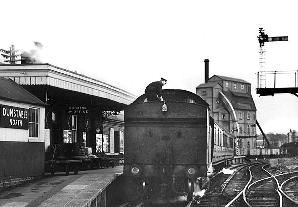 Dunstable North station looking west in September 1955. A Luton train waits in the down platform.