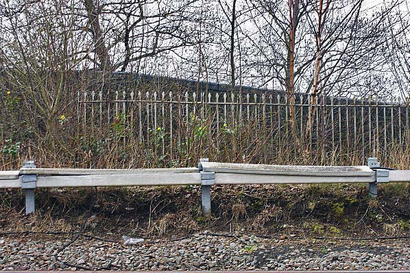 A surviving section of railings at Dunstall Park station as seen in March 2012 at the western end of the down platform.