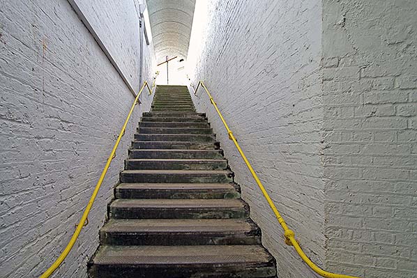 The covered stairs up from the subway in April 2014.