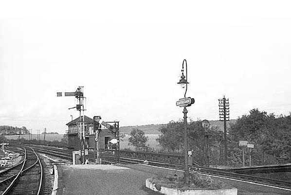 Photo by Chris-Knowles-Thomas from Southern E Group web site ![]() The north end of Dunton Green station looking north on 28 October 1961, the final day of service on the Westerham branch. The branch platform is on the left. The short-posted and slightly comical-looking up main starting signal is 'off' for a train to proceed towards Polhill Tunnel and Knockholt. Between the two semaphore signals the new but not yet commissioned colour-light signal with its 'car stop' sign can be seen. The white diamond on the shorter signal post indicates track circuiting. No such indication is provided on the taller signal, the branch up starter. Visible to the immediate right of the platform ramp is one of the ground signals controlling the reverse crossover between up and down main lines. The neck of the gas lamp bears two smart BR totems. Quite when these were installed at Dunton Green is unclear but photographic evidence suggests the 1959 - 60 period if not early 1961. It is strange to think that by this time other stations, notably on the Eastern Region, had already lost their totems in favour of names on fluorescent lamp casings. Such were the many regional variations to be found across the BR network. To the right of the gas lamp, and doing a good job of camouflaging itself against the trees in the background, is a banner repeater signal. These comprised a white disc with black bar and gave train drivers advanced warning of signal indications ahead which had a restricted view. At Dunton Green the restricted view would have been caused mainly by the footbridge and its piers as trains approached the station on the curve to the north. It should be remembered that train drivers, especially those in charge of trains not stopping, require a clear view of signals ahead from a considerable distance. Guards and certain station staff also need to see signal aspects and for this reason repeaters can also be found part-way along station platforms, usually suspended beneath the canopy. The BR totems at Dunton Green which faced the branch platform were arguably the only ones to be installed on the Westerham branch. Of particular note in this view is the absence of the new colour-light signal which had been installed as the Up Starter for the branch. It had been removed sometime between September and closure.
