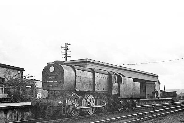 Photo by Chris-Knowles-Thomas from Southern E Group web site ![]() The Bulleid Q1 No.33029, used on certain last day Westerham branch services, is seen here in the branch platform at Dunton Green. The inscription on the smokebox suggests that she has already made at least one trip down the branch. What has probably happened is that the Q1 had arrived from Westerham and the train, main line set 277, has returned to Westerham behind D1 No.31739 and the Q1 is reversing through the platform to position itself on the loop ready to take over the next service along the branch. When the train returns from Westerham the D1 will repeat the same procedure. By the time of closure the Saturday service on the branch still ran more-or-less hourly. This photograph offers a good view of the Q1 design, with its Bulleid-profile boiler casing (the boiler itself was of the normal cylindrical pattern) and the Bulleid Firth Brown wheels. Usually associated with steam locomotives, this type of wheel also appeared on the Southern's diesel shunters which were to become BR Class 12.