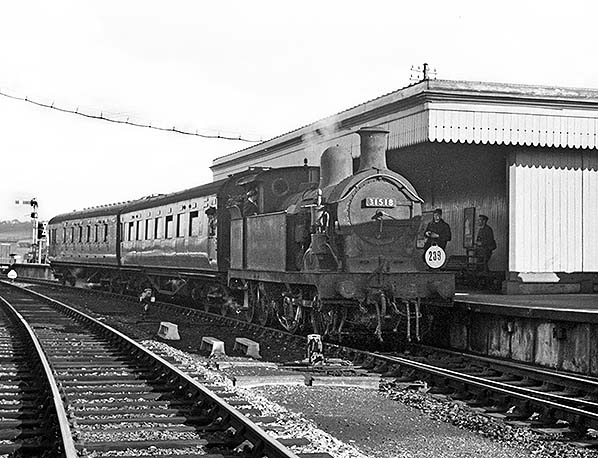 ![]() Another last day, 28 October 1961, view of No.31518 and green liveried Maunsell set. Having taken over from No.31324, No.31518 has already made at least one trip to Westerham and back as the smokebox and tank inscriptions have now appeared. These are believed to have been applied at Westerham. On the platform, some examples of the fashions of the time can be observed. In push-and-pull days a shift on the Westerham branch must have been an easy job for the locomotive crews if not, perhaps, a little monotonous. The service ran basically hourly and journey time was eleven minutes each way with ample dwell time at each end. With the London Congestion Charge, expensive parking (if one can find anywhere to park) and motoring being generally no longer the dream so beloved of 1960s pro-road propagandists, if it ever was, one wonders what the situation with the Westerham branch would be today had it not closed.